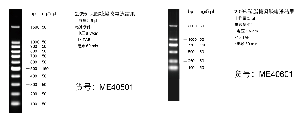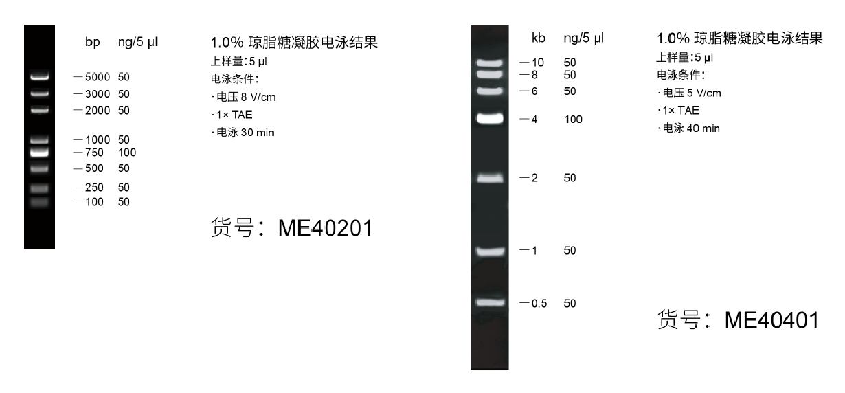 莫纳“新花样”-DNA分子量标准(ME40201、ME40401、ME40501、ME40601、ME40701)