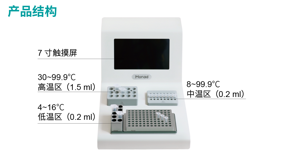 独立三温区:三个温区独立控温,能够同时 进行不同温度要求的实验,加 样与反应一机完成;