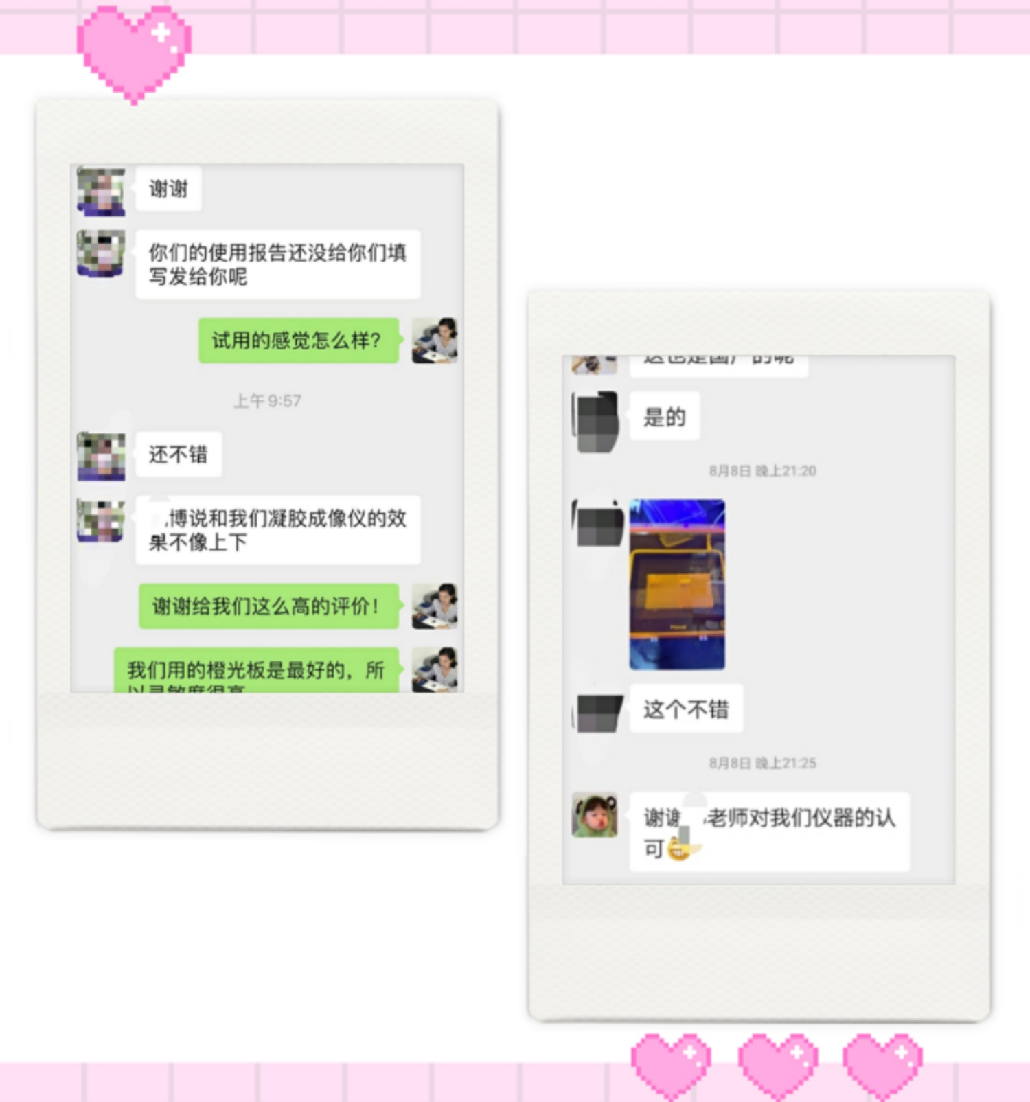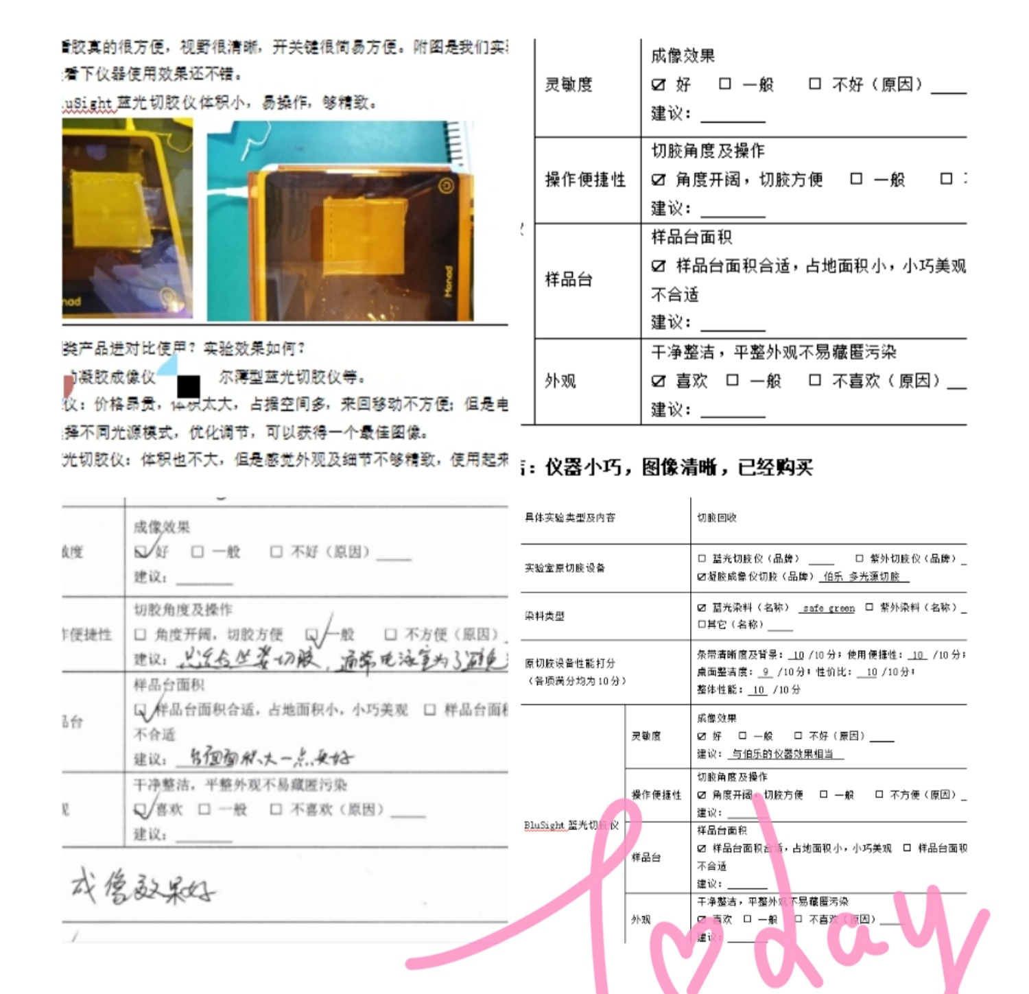 在8月初,我们发起了BluSight蓝光切胶仪产品体验计划,近40名产品体验官参与了该产品的体验试用。从客户收货到产品使用操作,我们全程跟进了20+来自全国各地科研人员的体验过程,每一个环节都有专职的技术支持和产品经理服务解答,最终我们收集了22份客户真实体验评价报告!