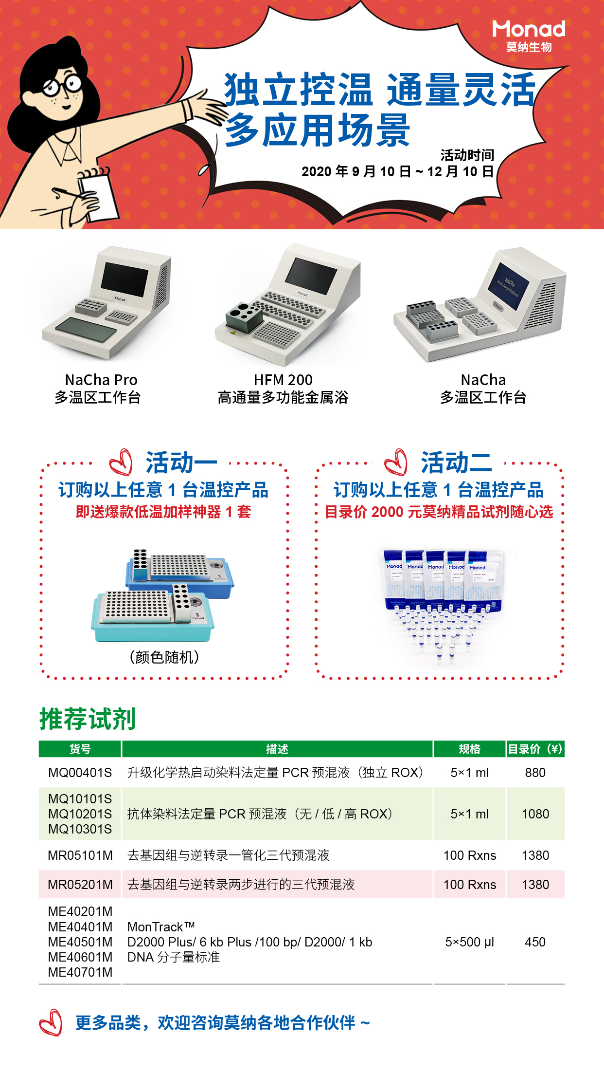 订购1台NaChaPro多温区工作台/HFM 200高通量多功能金属浴/NaCha多温区工作台,即送恒温金属冰盒一套或价值2000元精品试剂任选!