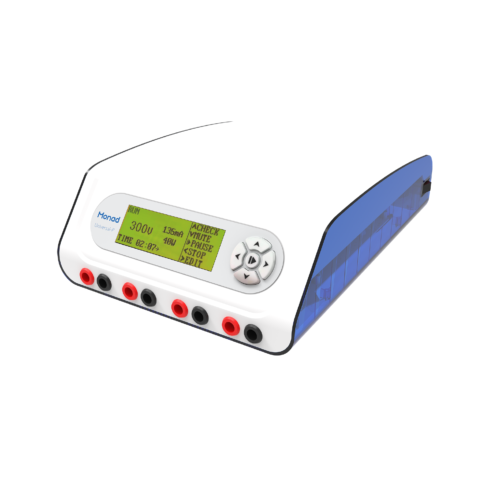琼脂糖胶及聚丙烯酰胺蛋白胶,电泳实验一般由电源、电泳槽、检测单元等组成,其中电泳仪电源是实现电泳分析的仪器,Universal-P 通用电泳仪电源利用微电脑和开关电源技术,比传统的电泳仪电源有着不可比拟的优点,可选择定时与非定时输出,具有输出电压稳定,输出短路保护,未接负载停止输出电压功能,适合于潜水式凝胶电泳和小型微型垂直凝胶电泳。本电源适用于多台电泳槽设备进行电泳及转膜,但是也要注意不要超过最高电压功率范围。